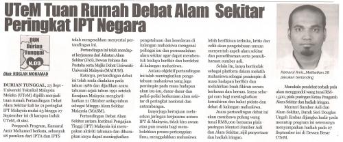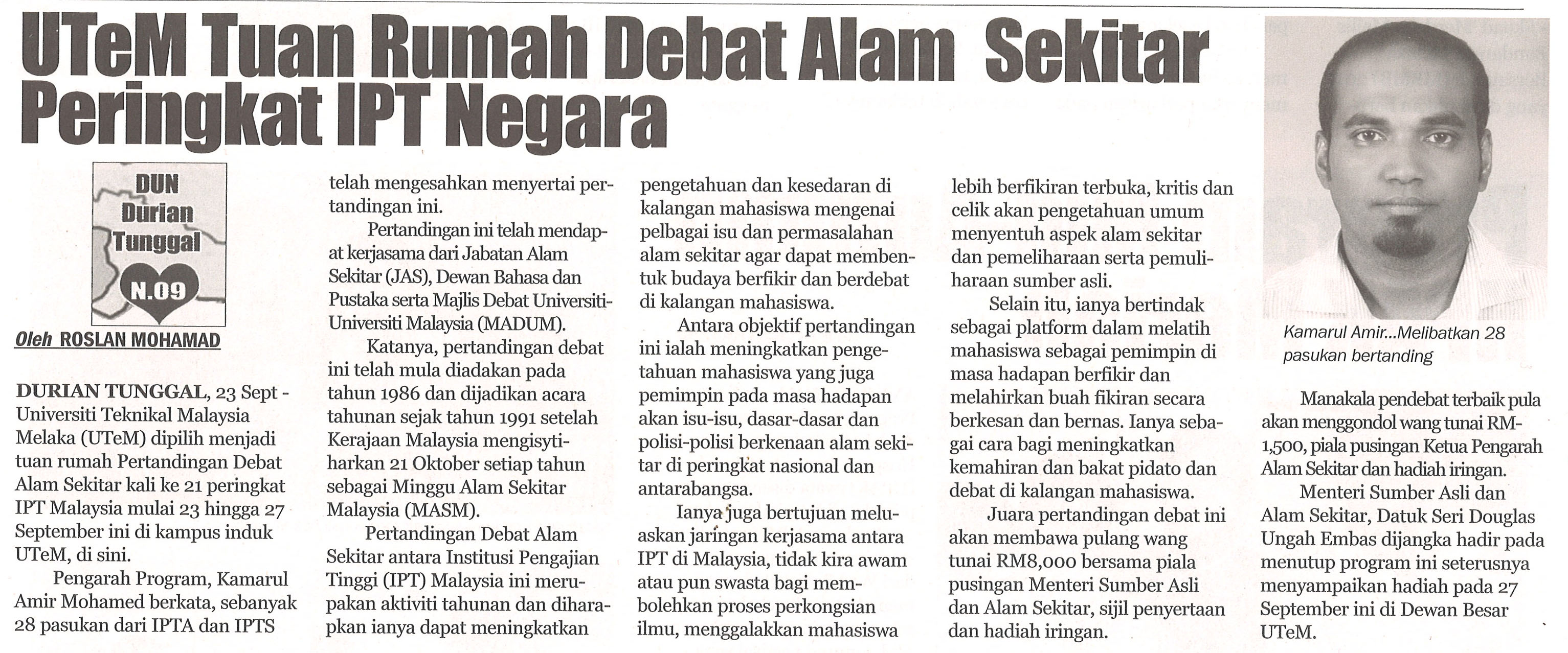 UTeM Tuan Rumah Debat Alam Sekitar Peringkat IPT Negara