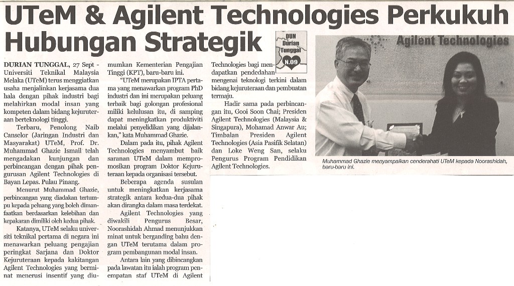 UTeM & Agilent Technologies Perkukuh Hubungan Strategik
