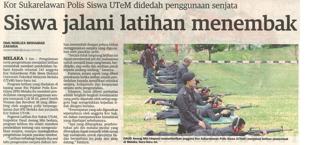 Kor Sukarelawan Polis Siswa UTeM didedah penggunaan senjata Siswa jalani latihan menembak