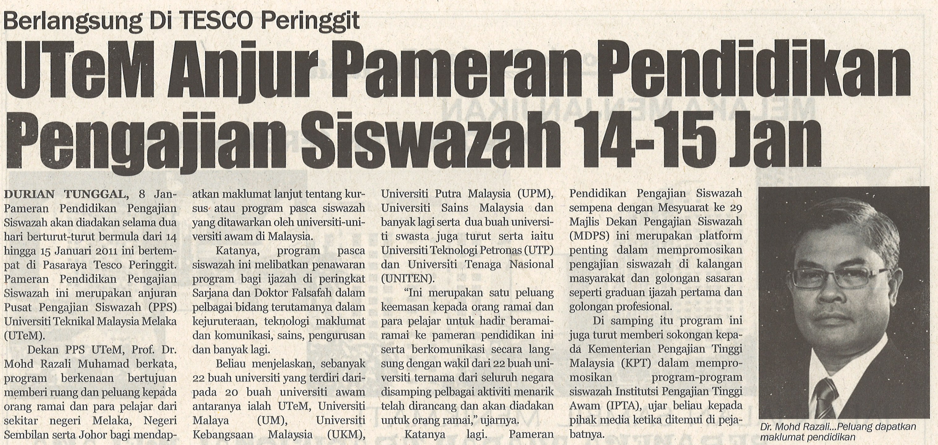 UTeM anjur pameran pendidikan pengajian siswazah 14-15 Jan