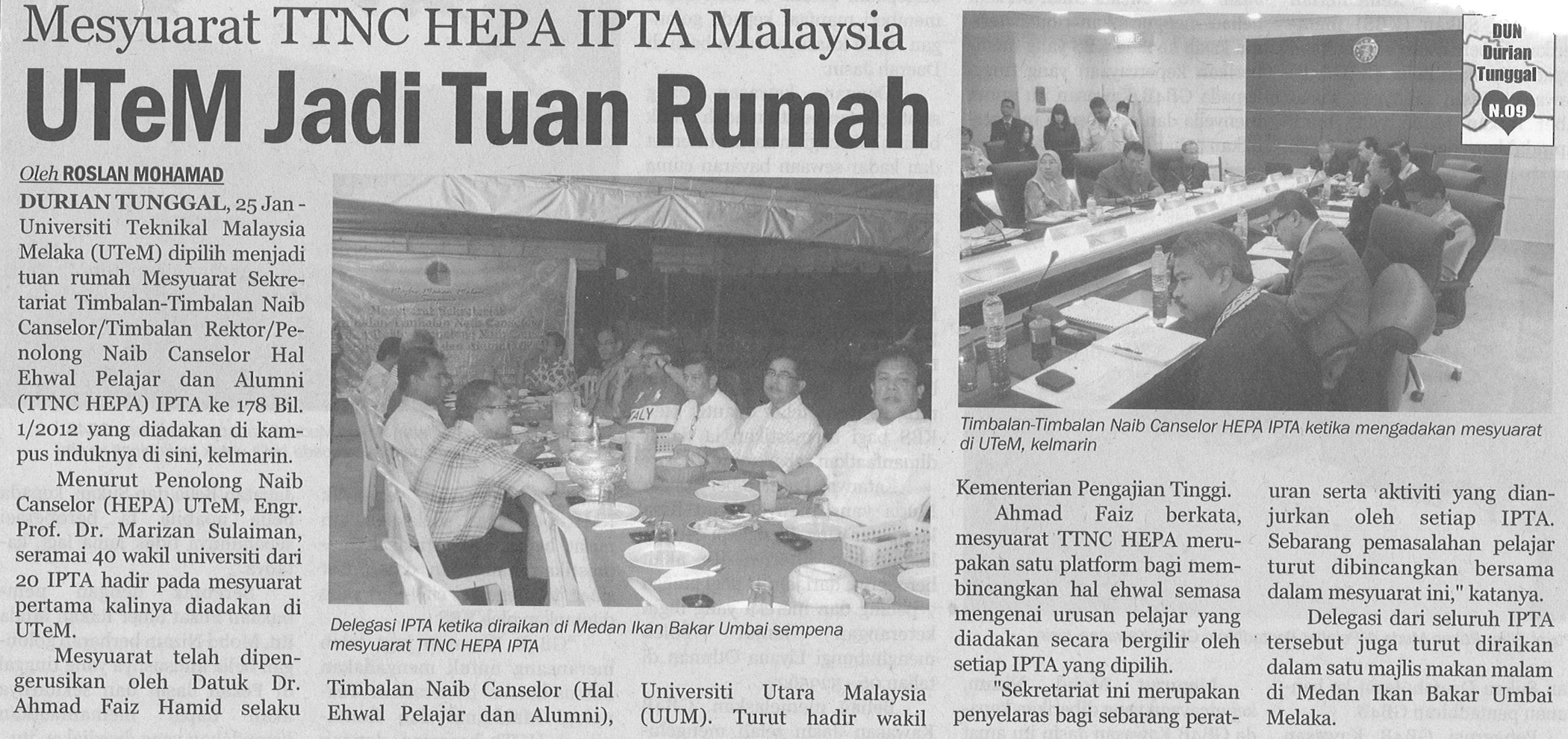 Mesyuarat TTNC HEPA IPTA Malaysia, UTeM Jadi Tuan Rumah