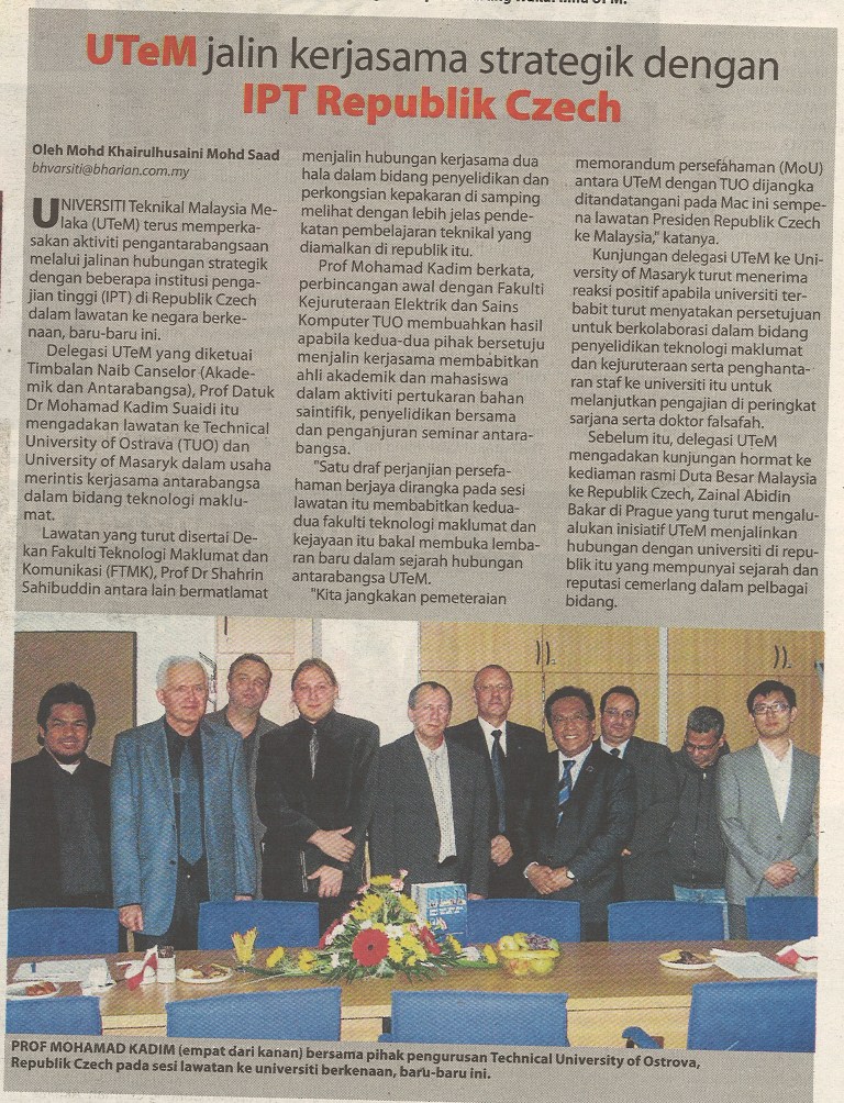UTeM jalin kerjasama strategik dengan IPT Republik Czech