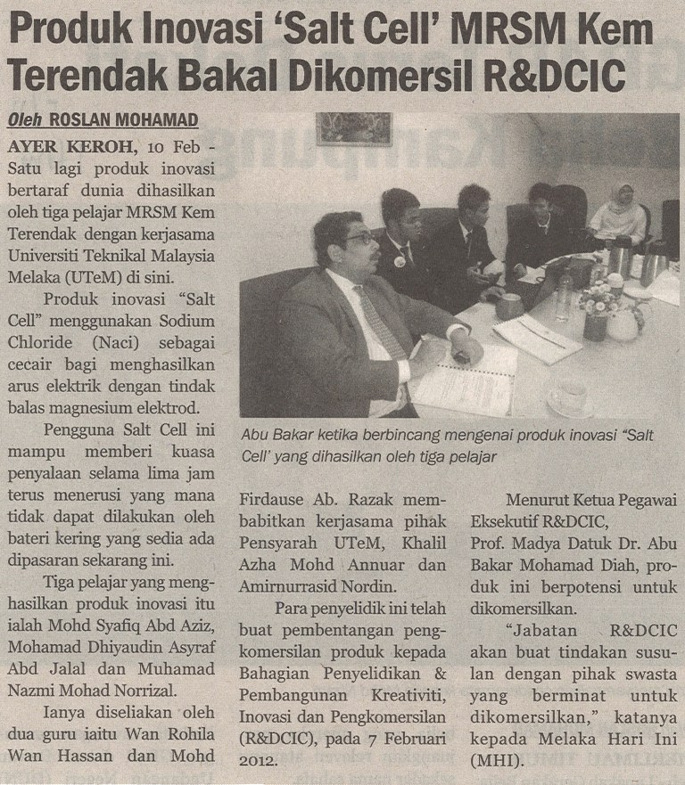 Produk Inovasi 'Salt Cell' MRSM Kem Terendak Bakal Dikomersil R&DCIC