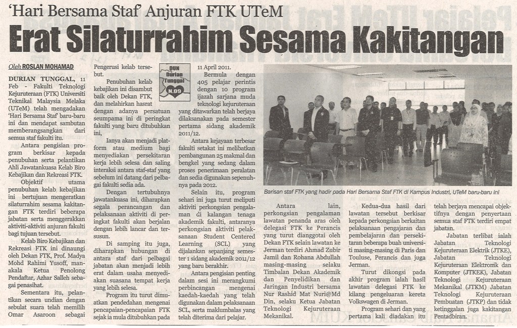 Hari Bersama Staf Anjuran FTK UTeM Erat Silaturrahim Sesama Kakitangan