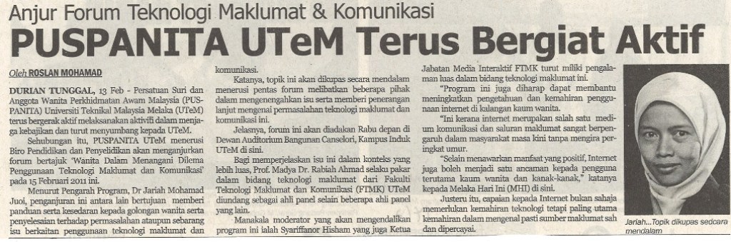 Anjur Forum Teknologi Maklumat & Komunikasi Puspanita UTeM Terus Bergiat Aktif