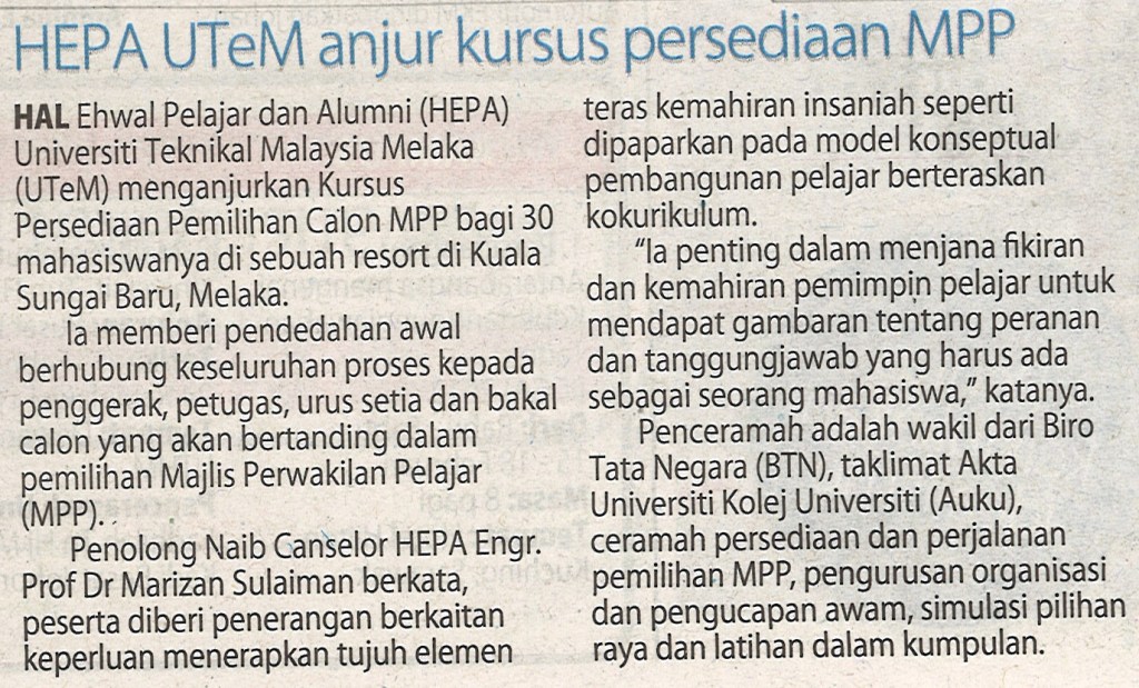 HEPA UTeM anjur kursus persedian MPP