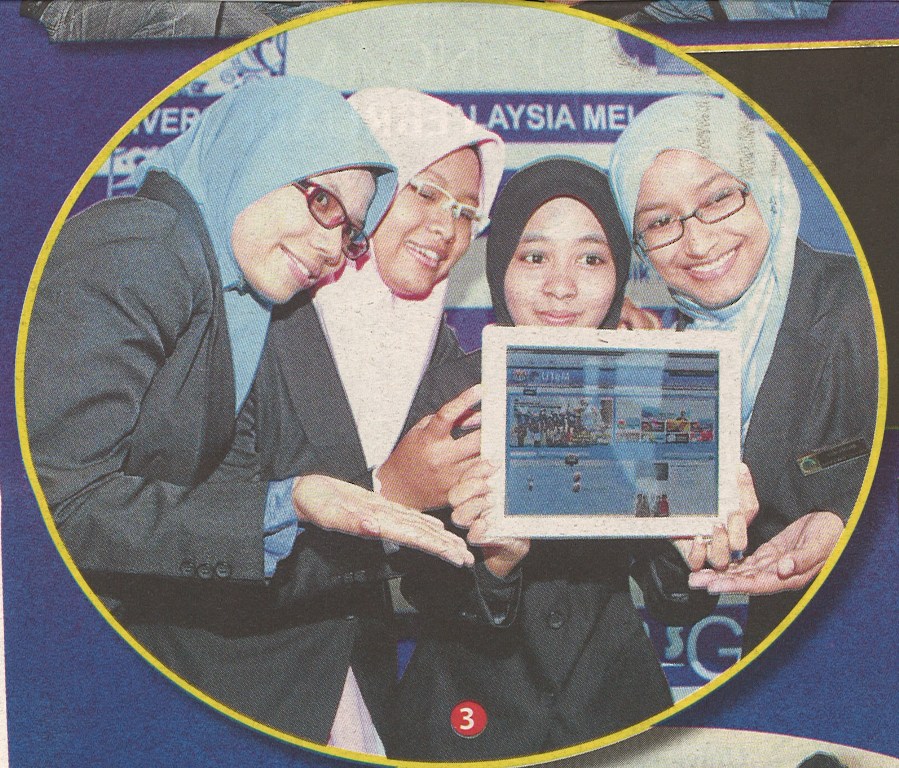 Empat Pelajar Universiti Teknikal Malaysia Melaka (UTeM) melihat iPad laman portal UTeM sejurus dilancarkan, baru-baru ini.