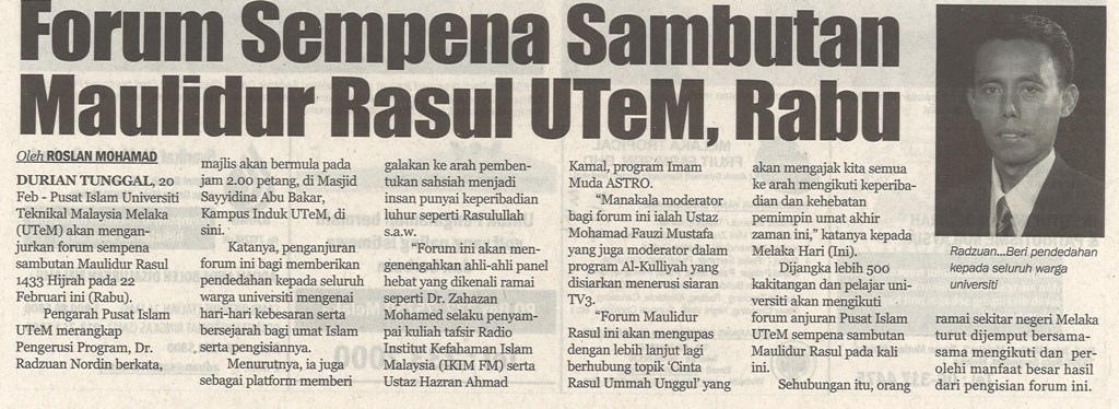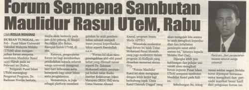 Forum Sempena Sambutan Maulidur Rasul UTeM, Rabu