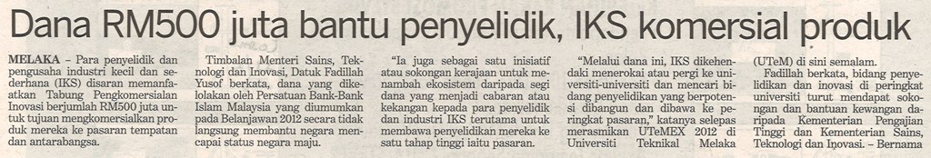 Dana RM500 juta bantu penyelidik, IKS komersial produk