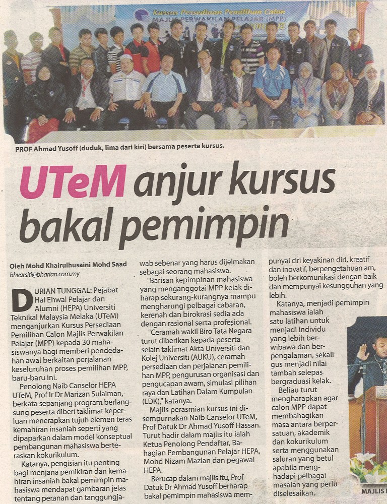 UTeM anjur kursus bakal pemimpin