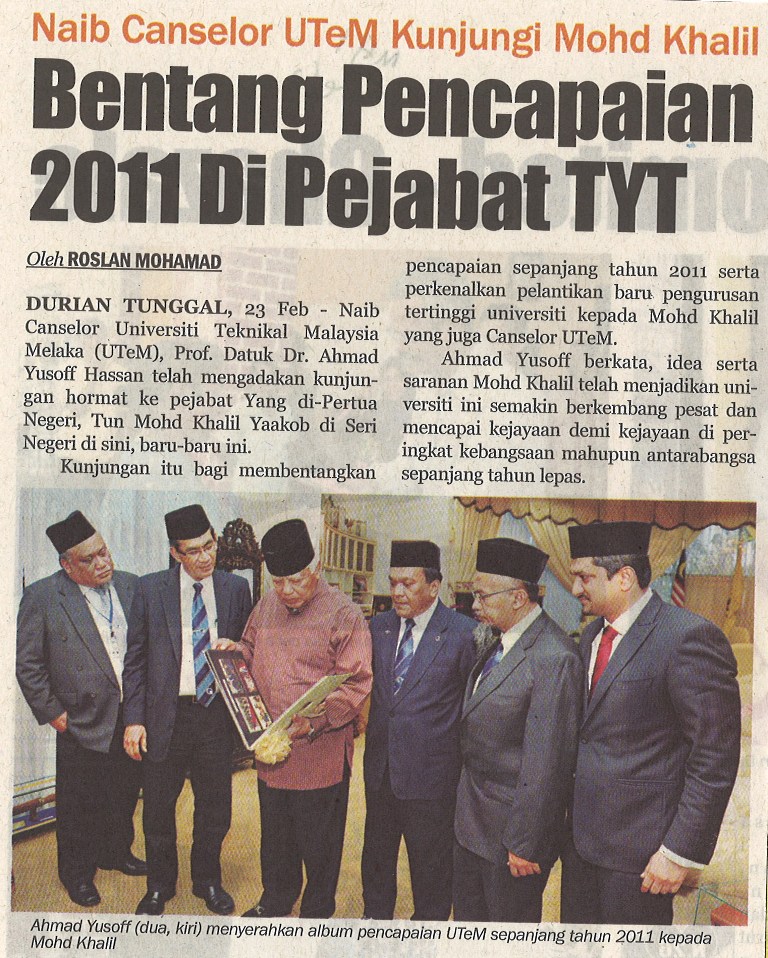 Naib Canselor UTeM Kunjungi Mohd Khalil Bentang Pencapaian 2011Di Pejabat TYT