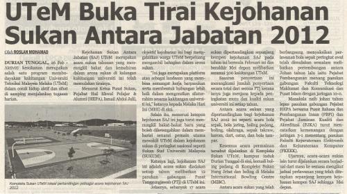 UTeM Buka Tirai Kejohanan Sukan Antara Jabatan 2012
