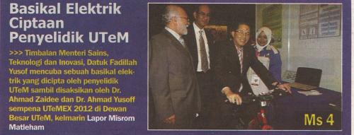 Basikal Elektrik Ciptaan Penyelidik UTeM