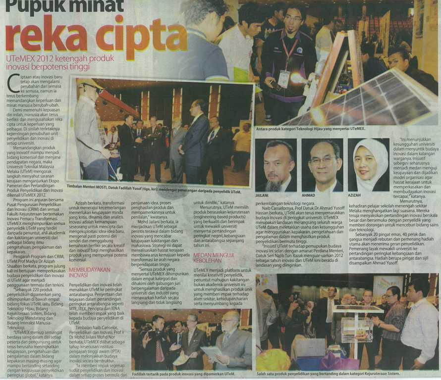 Pupuk minat reka cipta UTeMEX 2012 ketengah produk inovasi berpotensi tinggi
