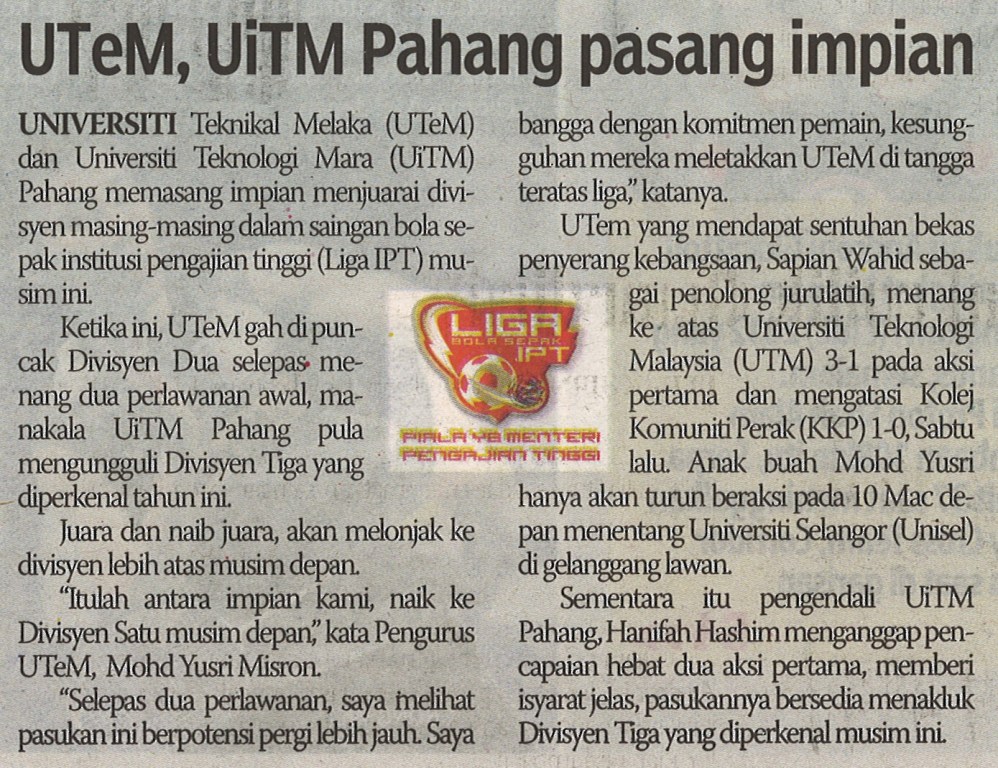 UTeM, UITM Pahang pasang impian