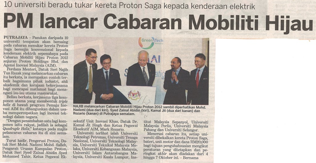10 universiti beradu tukar kereta proton saga kepada kenderaan elektrik PM Lancar Cabaran Mobiliti Hijau