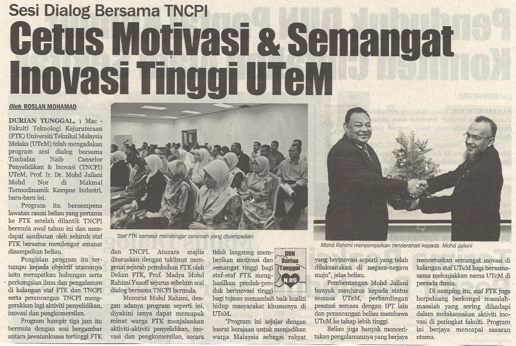 Sesi Dialog Bersama TNCPI Cetus Motivasi & Semangat Inovasi Tinggi UTeM