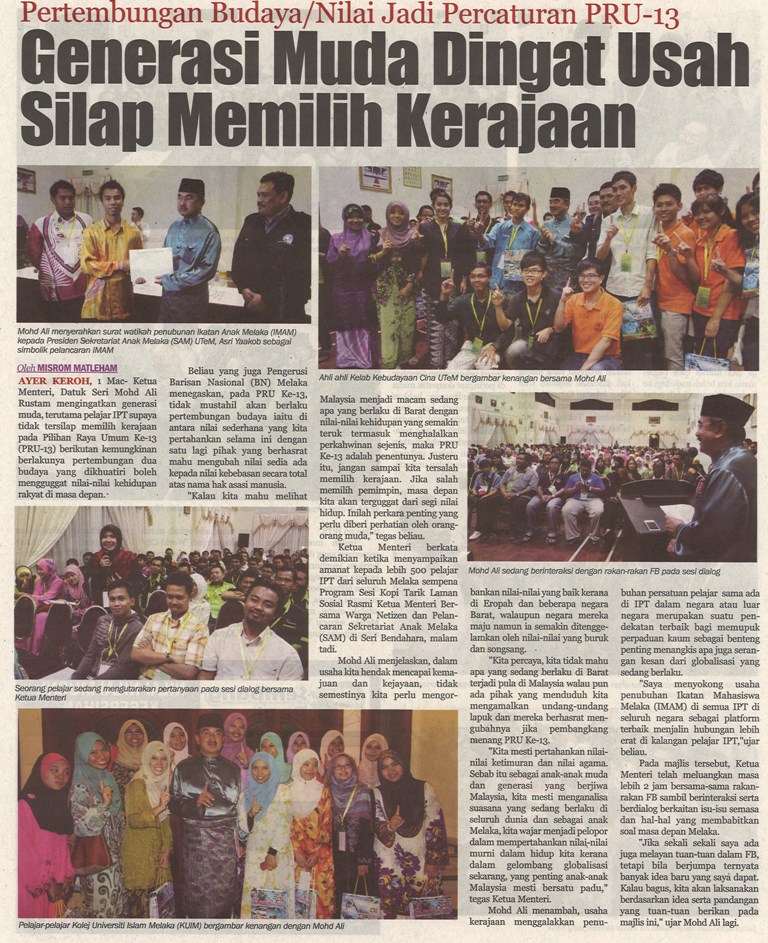 Pertembungan Budaya/ Nilai Jadi Percaturan PRU-13 Generasi Muda Dingat Usah Silap Memilih Kerajaan