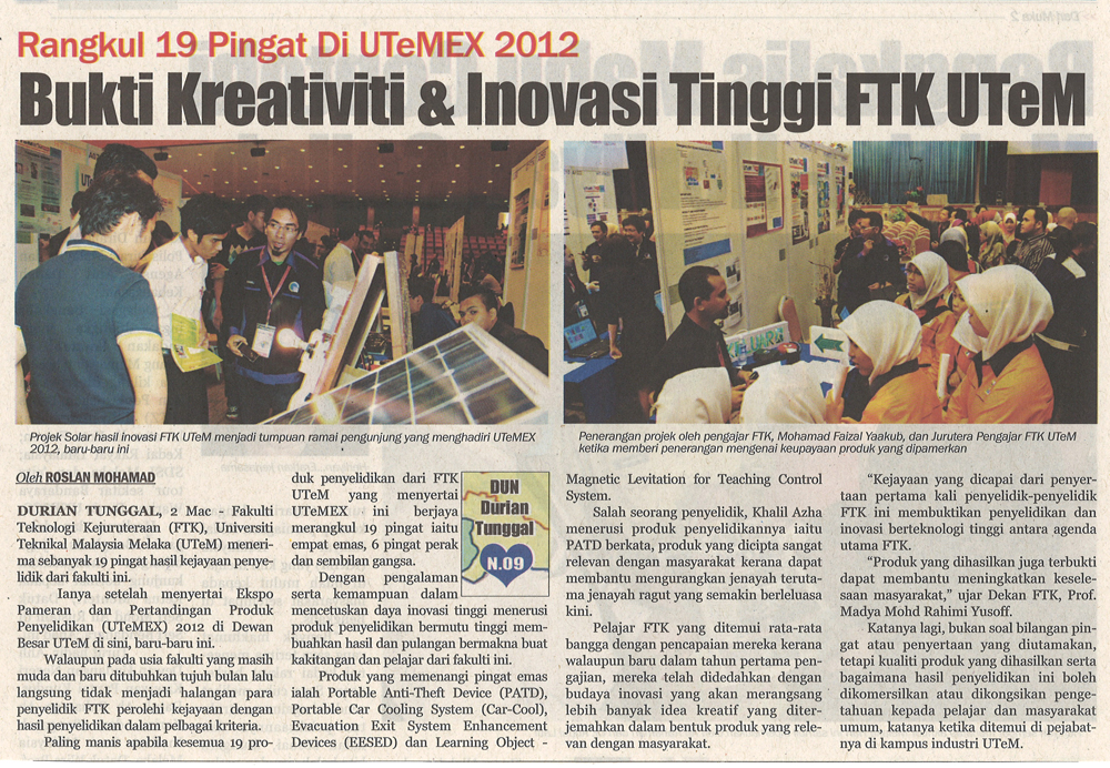 Rangkul 19 Pingat Di UTeMEX 2012 Bukti Kreativiti & Inovasi Tinggi FTK UTeM