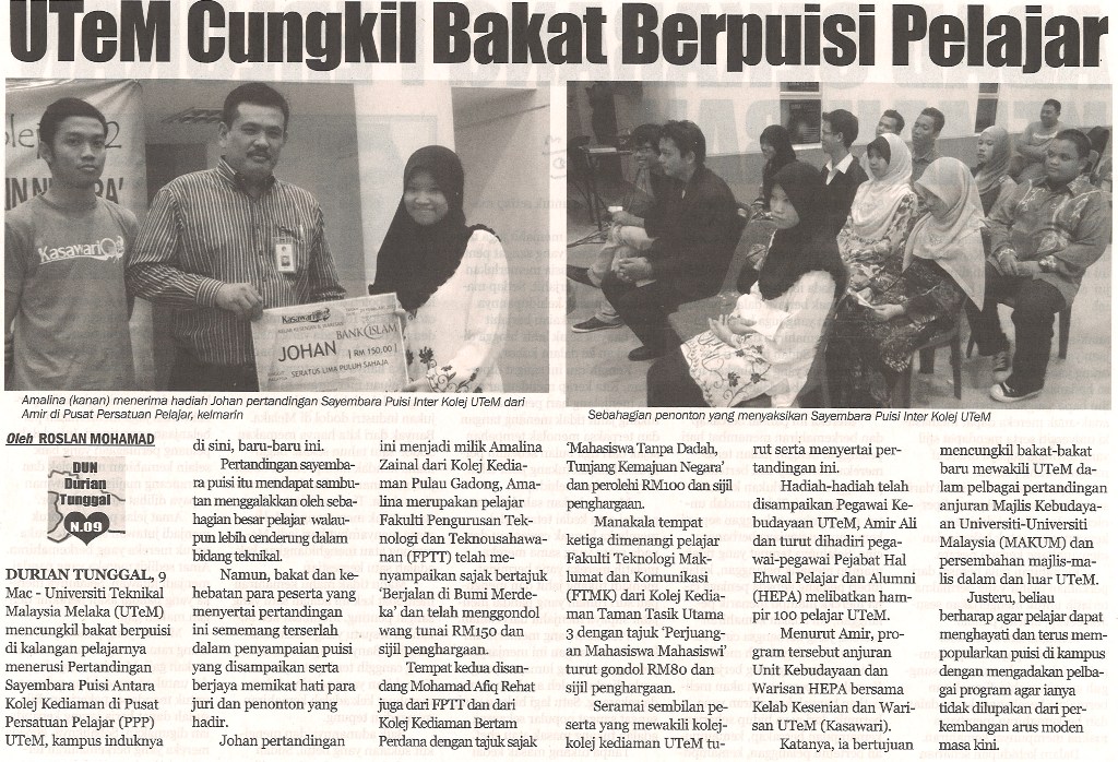UTeM Cungkil Bakat Berpuisi Pelajar