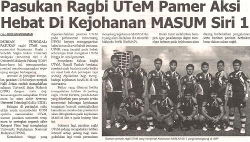 Pasukan Ragbi UTeM Pamer Aksi Hebat Di Kejohanan MASUM Siri 1