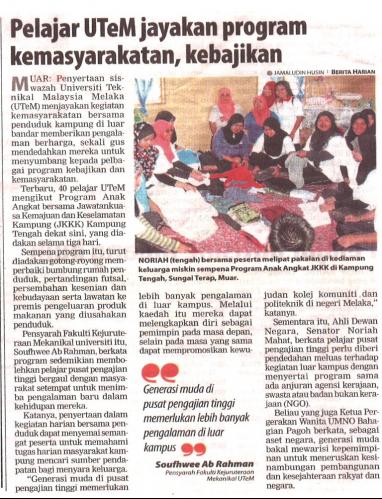 Pelajar UTeM jayakan program kemasyarakatan, kebajikan