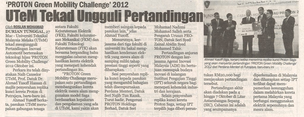 'Proton Green Mobility Challenge' 2012 UTeM Tekad Ungguli Pertandingan
