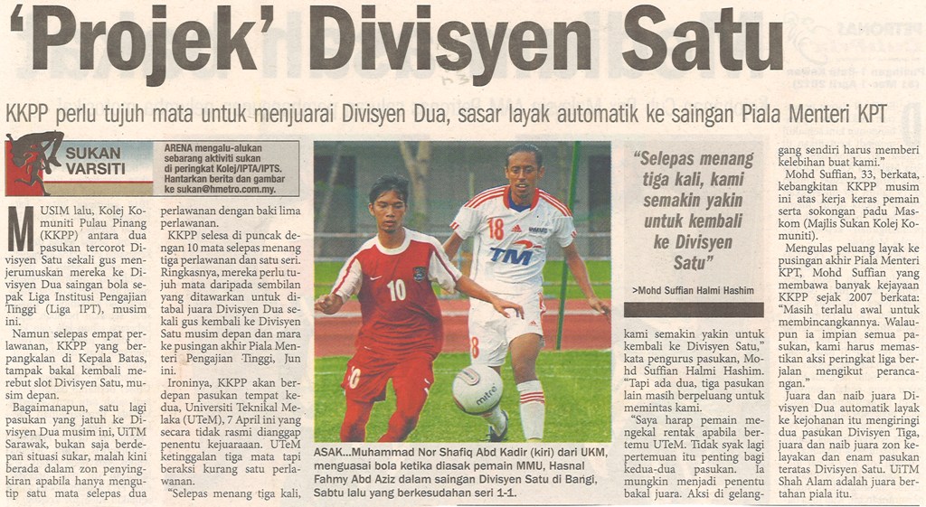 'Projek Divisyen Satu' KKPP perlu tujuh mata untuk menjuarai Divisyen Dua, sasar layak automatik ke saingan Piala Menteri KPT