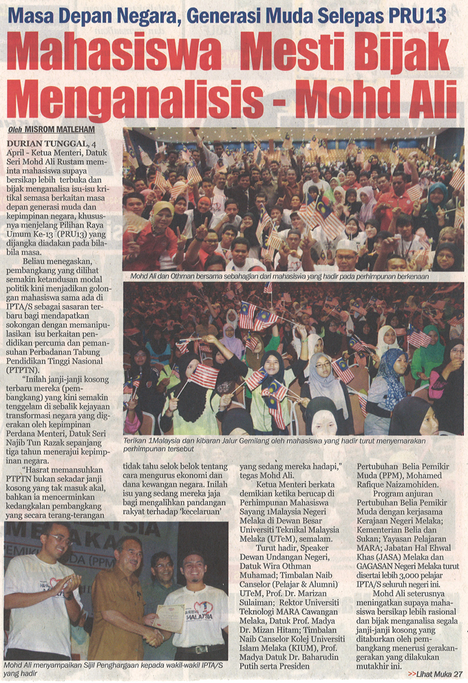 Masa Depan Negara, Generasi Muda Selepas PRU 13 Mahasiswa Mesti Bijak Menganalisis - Mohd Ali