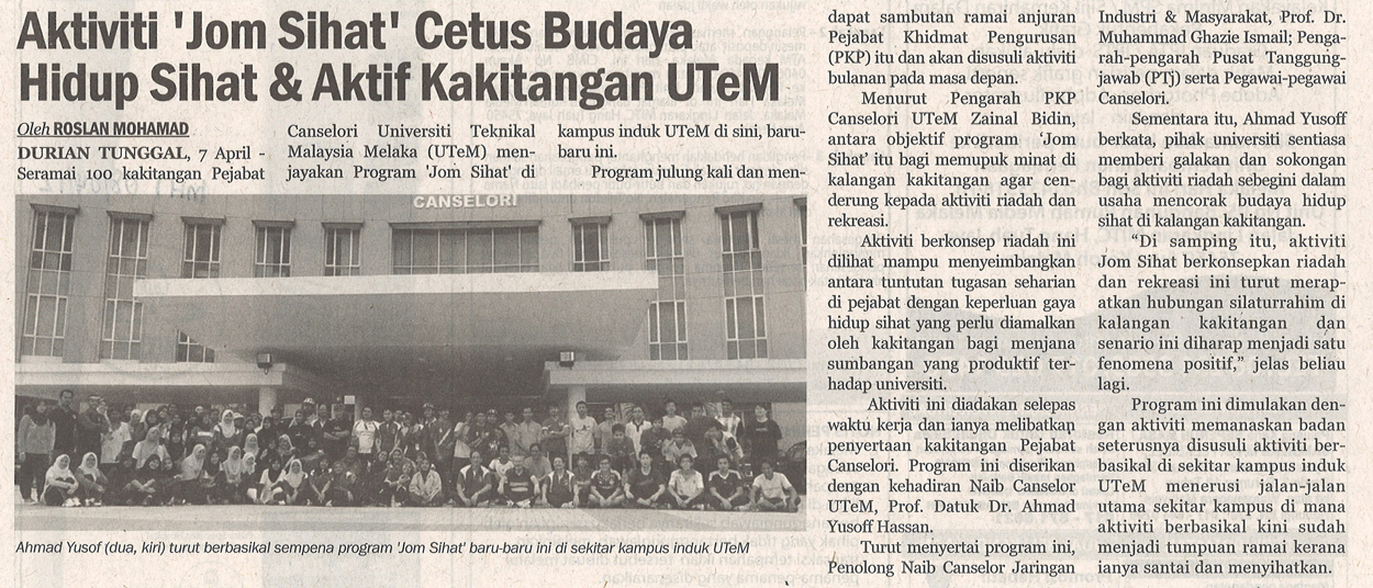 Aktiviti "Jom Sihat" Cetus Budaya Hidup Sihat & Aktif Kakitangan UTeM