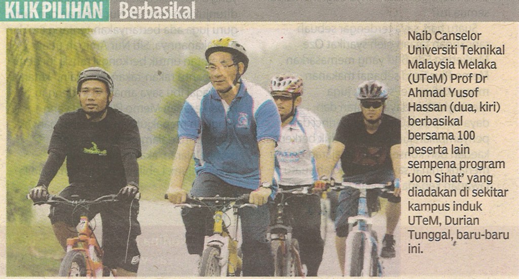Berita Bergambar Naib Canselor Malaysia Melaka (UTeM) Prof Dr Ahmad Yusof Hassan(dua dari kiri) berbasikal bersama 100 peserta lain sempena program 'Jom Sihat' yang diadakan di sekitar kampus induk UTeM, durian tunggal baru-baru ini