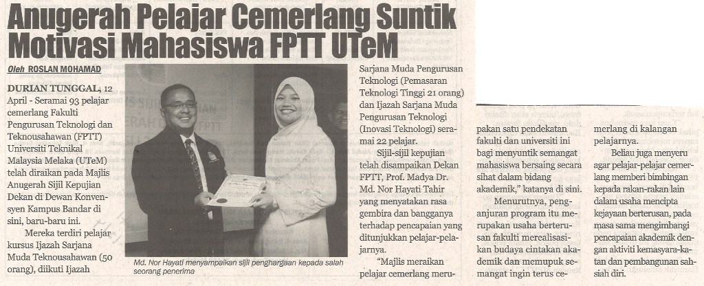 Anugerah Pelajar Cemerlang Suntik Motivasi Mahasiswa FPTT UTeM