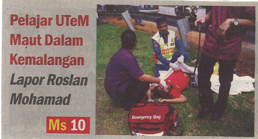 Sambungan Akhbar Pelajar UTeM maut dalam kemalangan