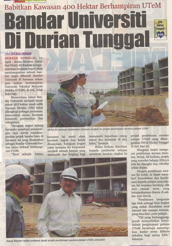 Babitkan Kawasan 400 Hektar Berhampiran UTeM Bandar Universiti Di Durian Tunggal
