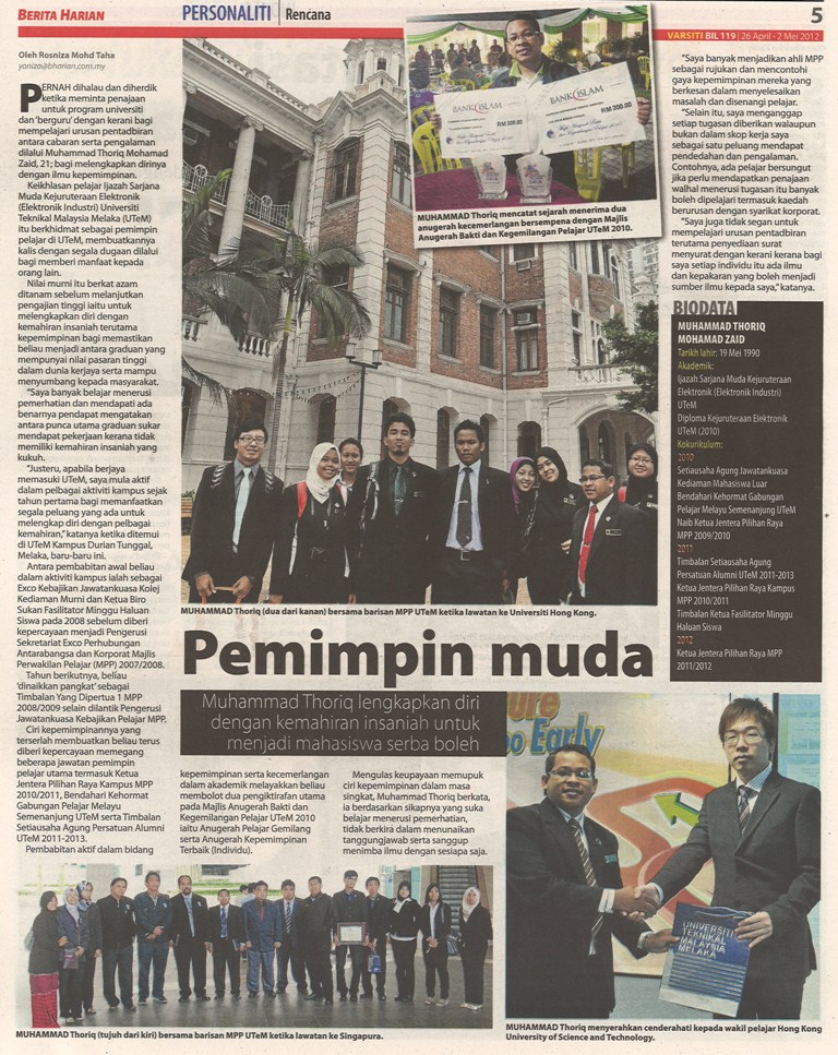 Pemimpin Muda Muhammad Thariq lengkapkan diri dengan kemahiran insaniah untuk menjadi mahasiswa serba boleh.