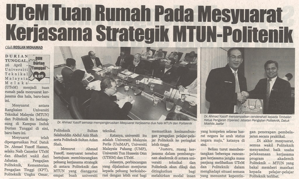 UTeM Tuan Rumah Pada Mesyuarat Kerjasama Strategik MTUN - Politeknik
