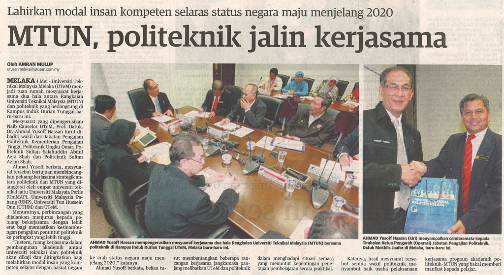 Lahirkan modal insan kompeten selaras status negara maju menjelang 2020 MTUN, politeknik jalin kerjasama