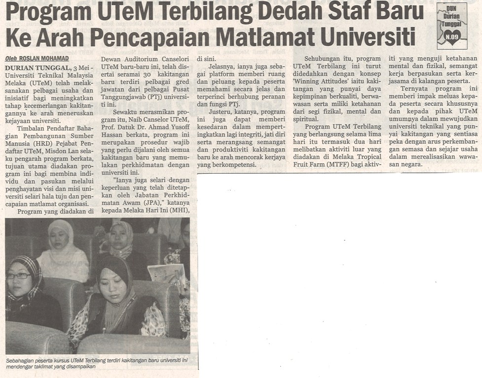 Program UTeM Terbilang Dedah Staf Baru Ke Arah Pencapaian Matlamat Universiti
