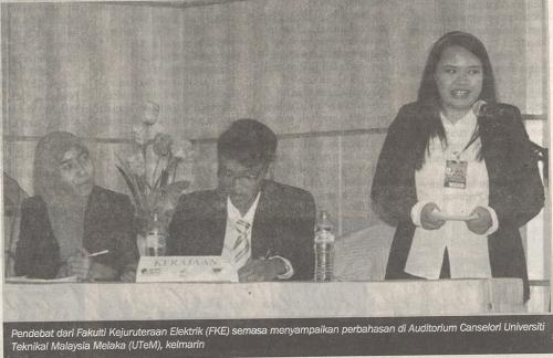 Berita Bergambar Pendebat dari Fakulti Kejuruteraan Elektrik (FKE) semasa menyampaikan perbahasan di Auditorium Canselori Universiti Teknikal Malaysia Melaka (UTeM), Kelmarin
