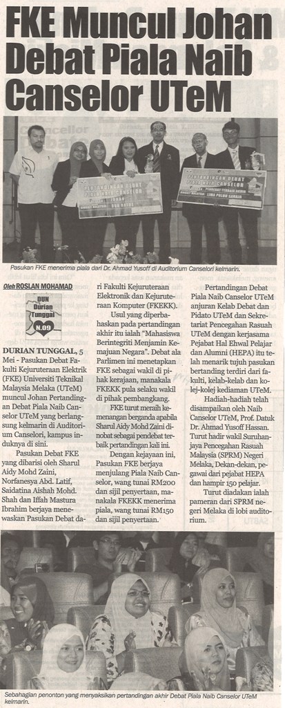 FKE Muncul Johan Debat Piala Naib Canselor UTeM