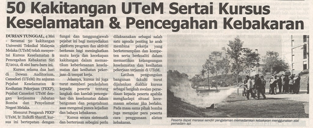 50 Kakitangan UTeM Sertai Kursus Keselamatan & Pencegahan Kebakaran