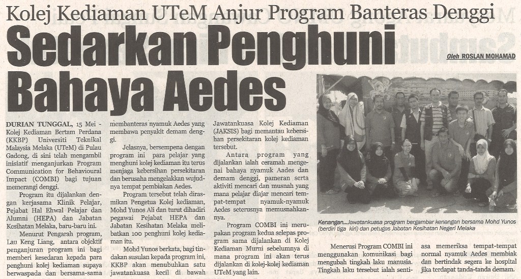 Kolej Kediaman UTeM Anjur Program Banteras Denggi Sedarkan Penghuni Bahaya Aedes