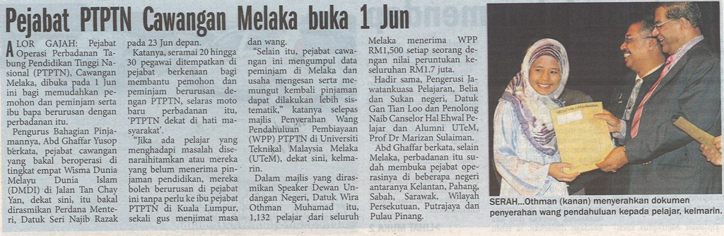 Pejabat PTPTN Cawangan Melaka buka 1 Jun