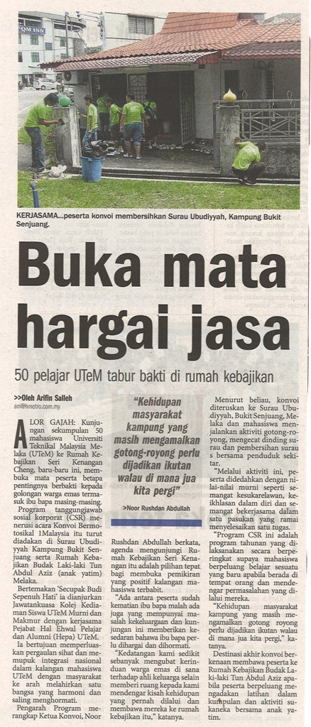Buka Mata hargai jasa 50 Pelajar UTeM tabur bakti di rumah kebajikan