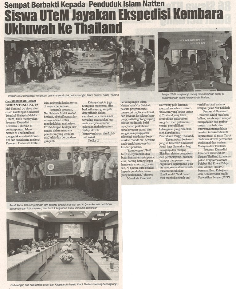 Sempat Berbakti Kepada Penduduk Islam Netten Siswa UTeM Jayakan Ekspedisi Kembara Ukhuwah Ke Thailand