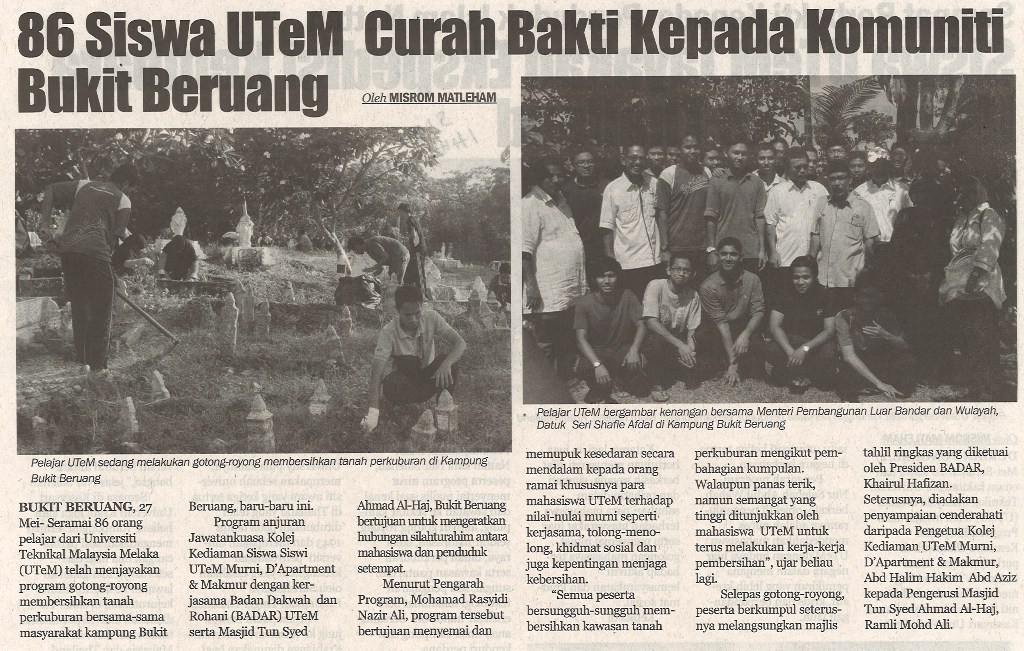 86 Siswa UTeM Curah Bakti Kepada Komuniti Bukit Beruang