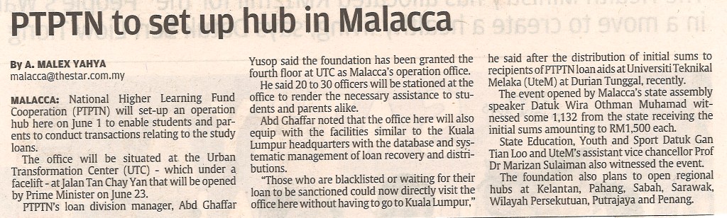 PTPTN to set ip hub in Malacca
