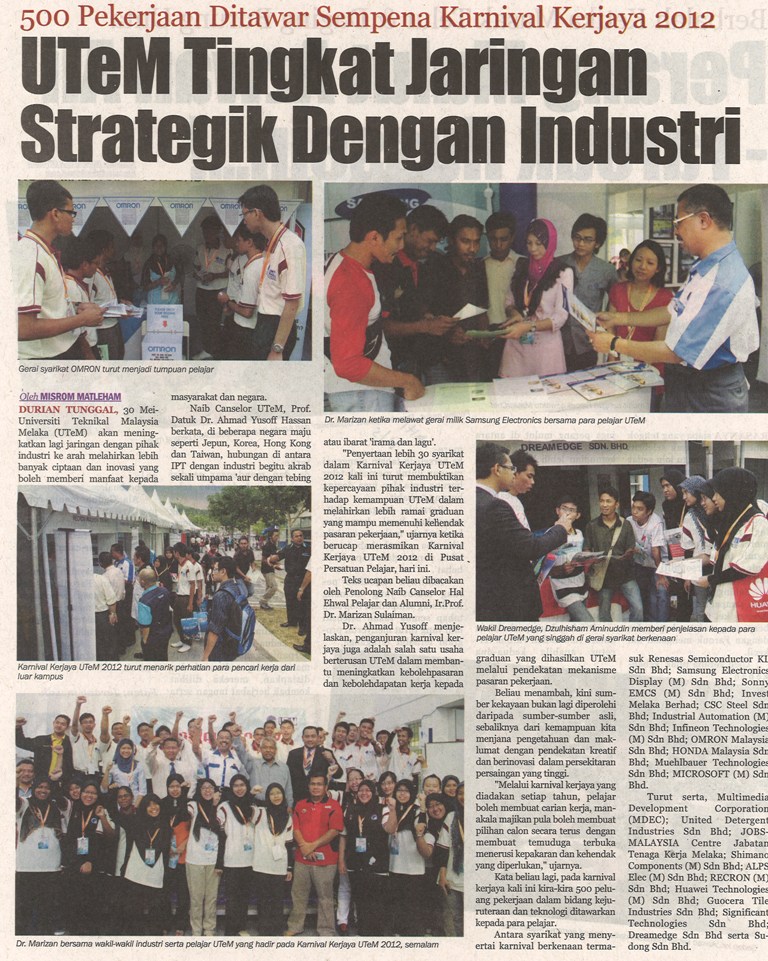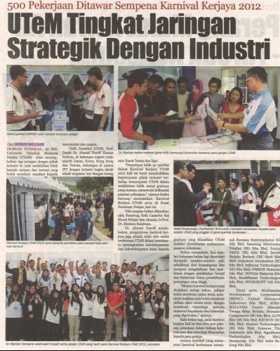 500 Pekerjaan Ditawar Sempena Karnival Kerjaya 2012 UTeM Tingkat Jaringan Strategik Dengan Industri