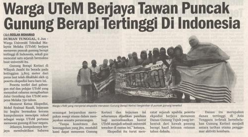 Warga UTeM Berjaya Tawan Puncak Gunung Berapi Tertinggi Di Indonesia