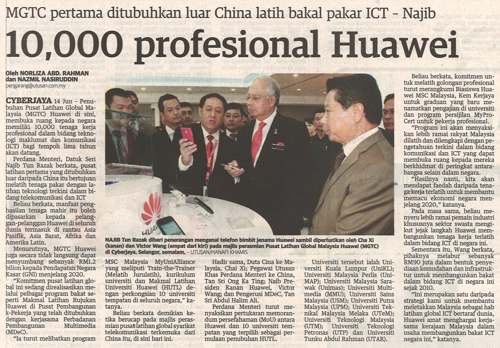 MGTC pertama ditubuhkan luar china latih bakal pakar ICT-Najib 10,000 profesional Huawei